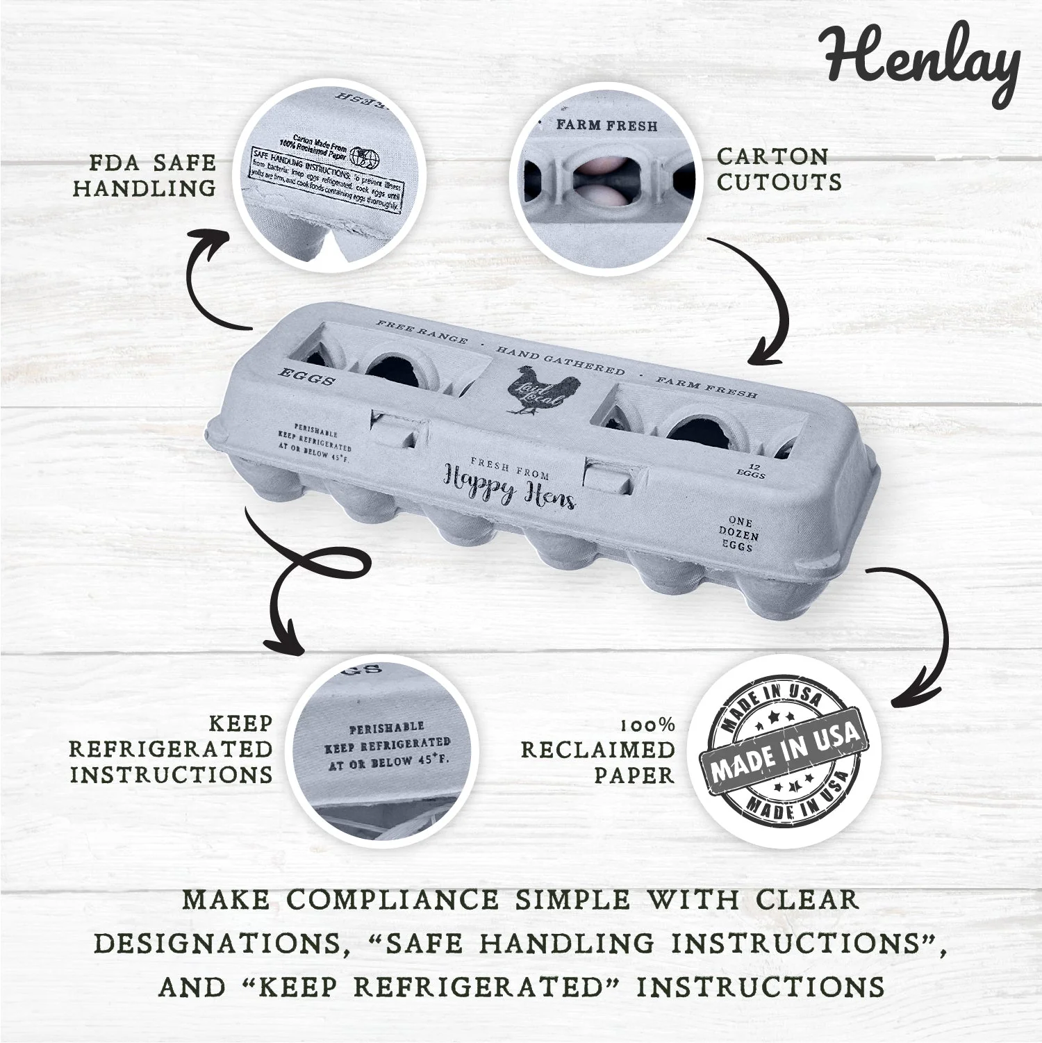 Henlay Laid Local Egg Cartons- Adorable Printed Vintage Design- 25, 90, or 250